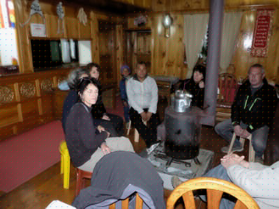 Nous allons passer deux jours ici afin de nous acclimater au-delà de 4000 mètres. Milan nous déconseille la bière, nous passons donc à l'eau chaude et au thé. Cela a peut-être déclenché mon manque d'appétit ou bien il s'agit du steak de yack du soir ? Toujours est-il que je ne me sens pas très bien.