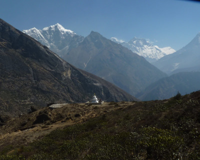 La montée vers Lobuche se fait sur un bon sentier qui nous mène jusqu'au village de Pheriche où nous ferons une petite pause thé fort agréable. Un dernier petit plat népalais (plat qui monte et qui descend pour rester à la même altitude) et nous voilà arrivés au lodge.