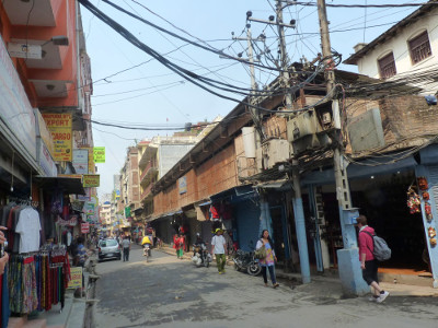 Après environ 40 minutes de mini-bus, nous arrivons à l’hôtel. Celui-ci est assez confortable et nous nous installons dans le salon en attendant nos chambres. Le responsable de l'agence locale nous briffe un peu sur le déroulement du trek et Milan prend le relais pour l'organisation générale et plus particulièrement le vol du lendemain vers Lukla. Nous préparons nos sacs de trek et partons en ville sans trop tarder car Suzanne doit se rééquiper.